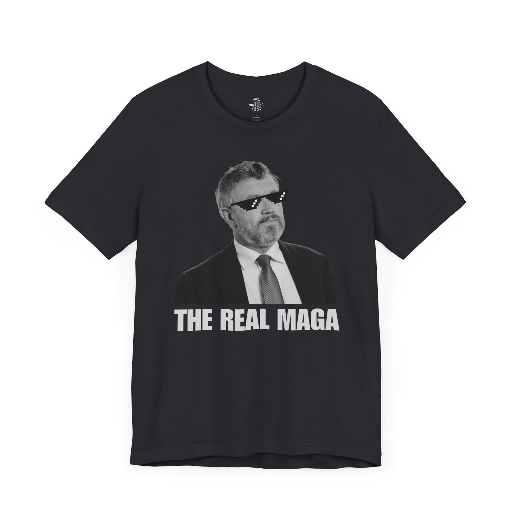 High-contrast photo with bold red “THE REAL MAGA” text